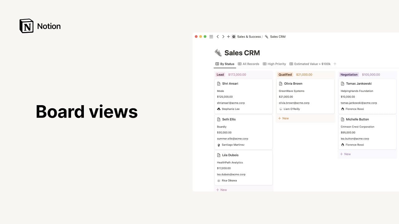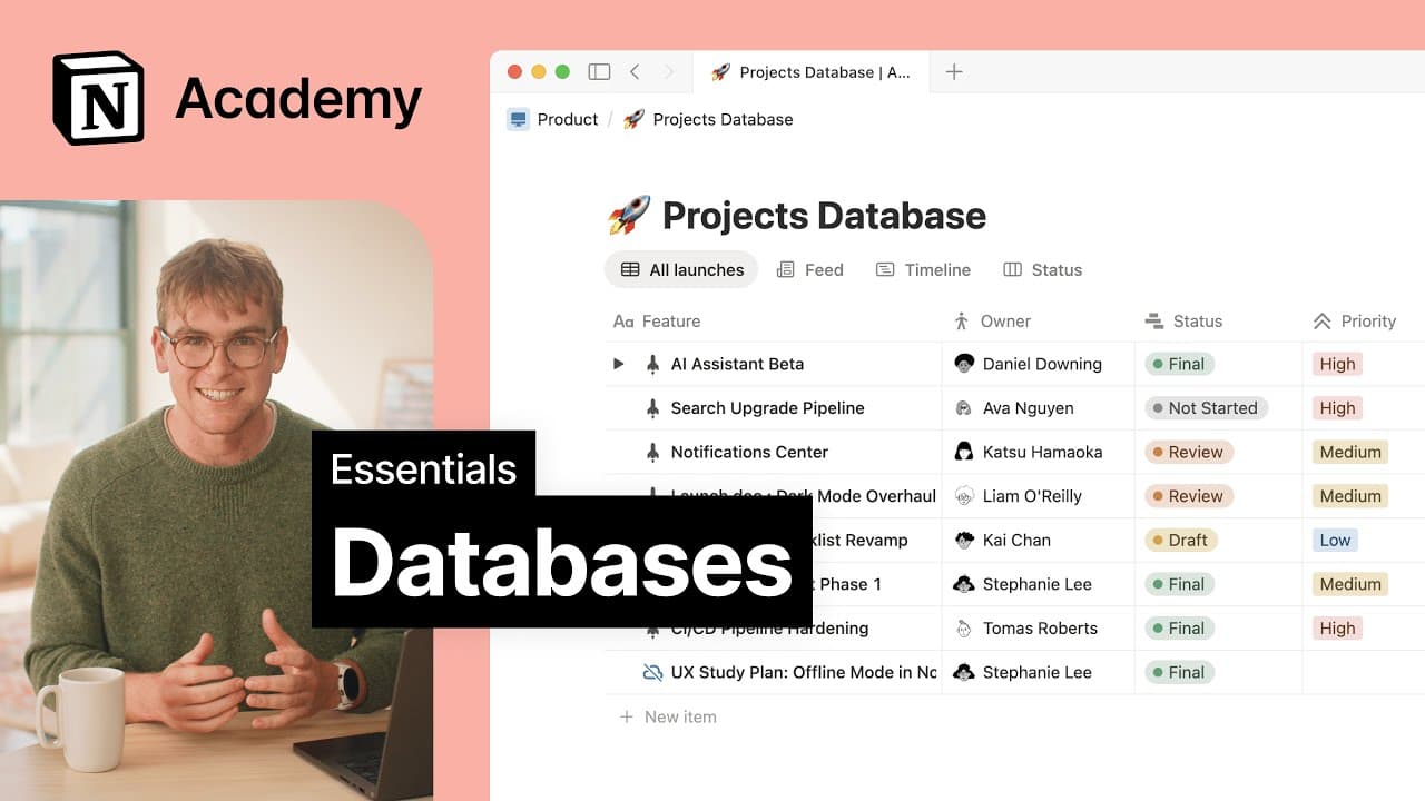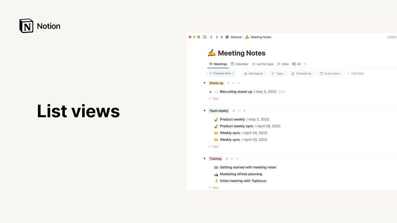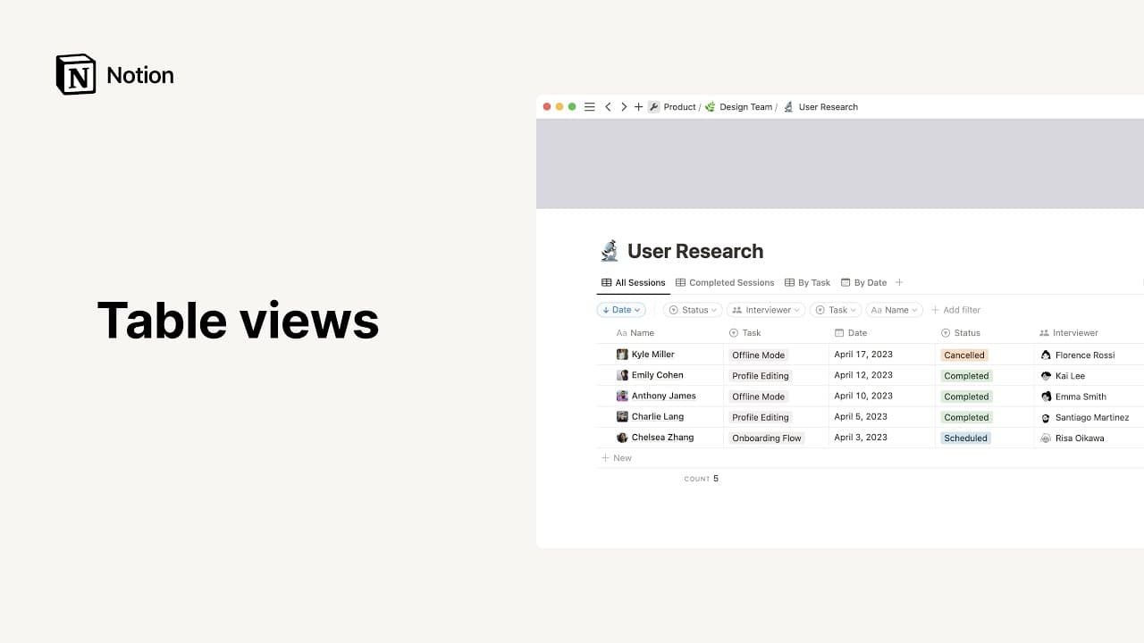 데이터베이스는 Notion 페이지의 모음으로, 다양한 방법을 사용해 정보를 정리할 수 있습니다. 여러 데이터베이스 보기 중에서 선택하여 콘텐츠 디스플레이와 검색 방식을 결정하세요.