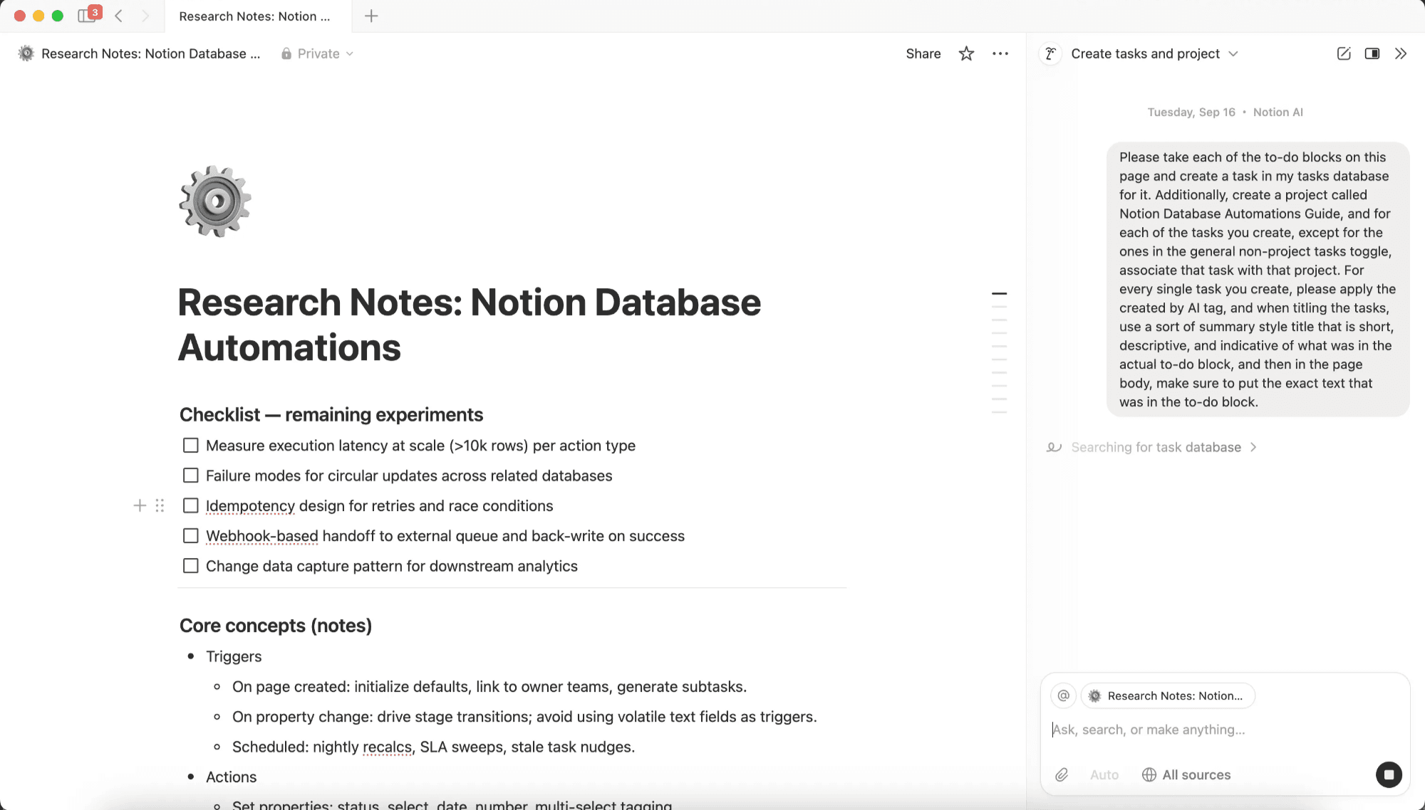 회의록 블록을 활용해 새 회의록 페이지를 생성하세요. 최근 프로젝트와 프로젝트 채널에서 진행된 주요 대화를 참고해 간단한 어젠다를 추가하세요.
