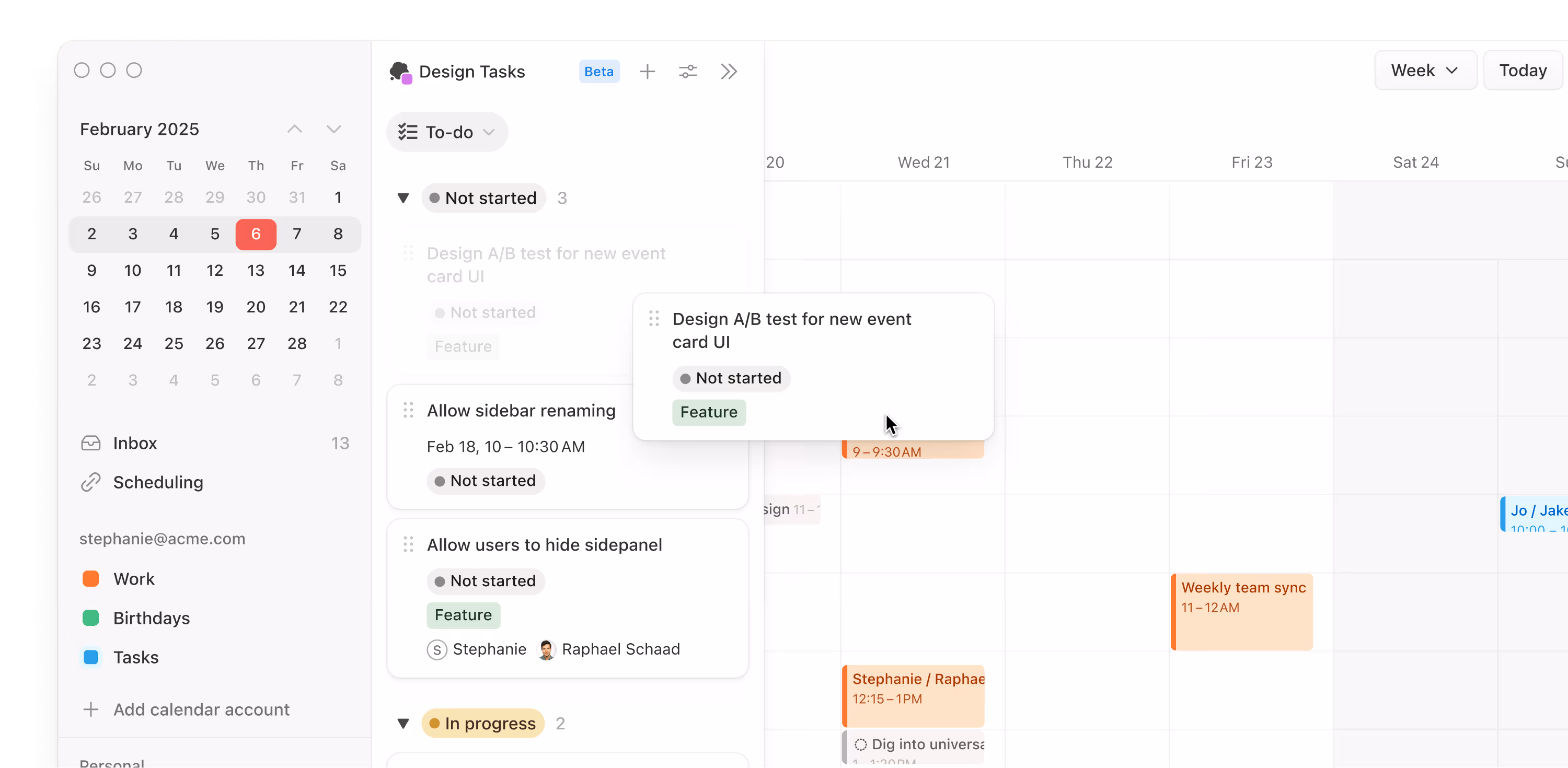 드래그 & 드롭만 하면 캘린더를 나가지 않고도 Notion 데이터베이스 항목을 편집할 수 있습니다.