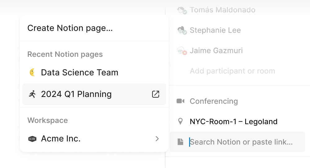 새로운 Zoom 회의를 Notion 캘린더에서 바로 생성해 보세요.