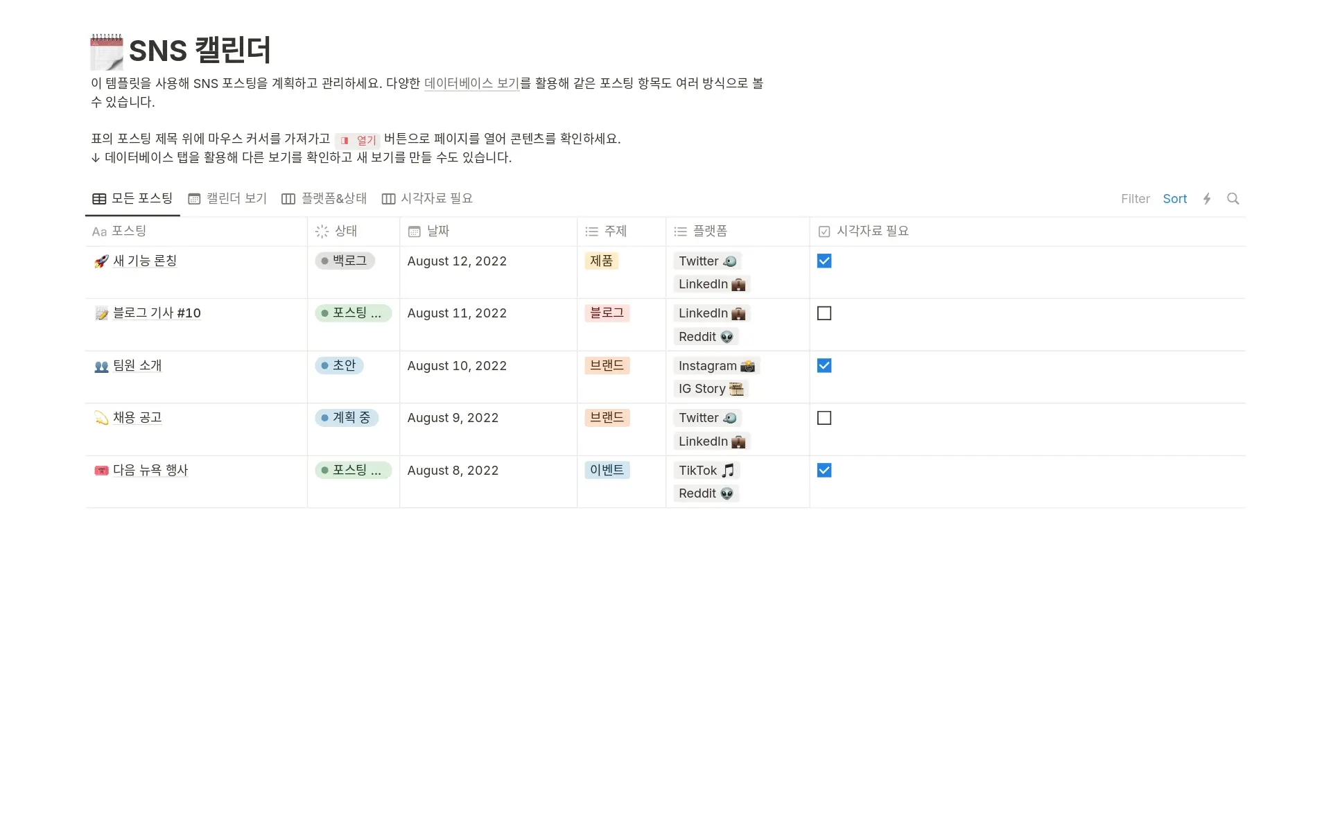 Notion팀 추천 템플릿